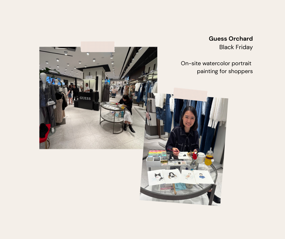 I’m Weiying, creating interactive live art moments for brands. At retail events and launches, guests receive a personalised keepsake — a tangible reminder of your brand experience.